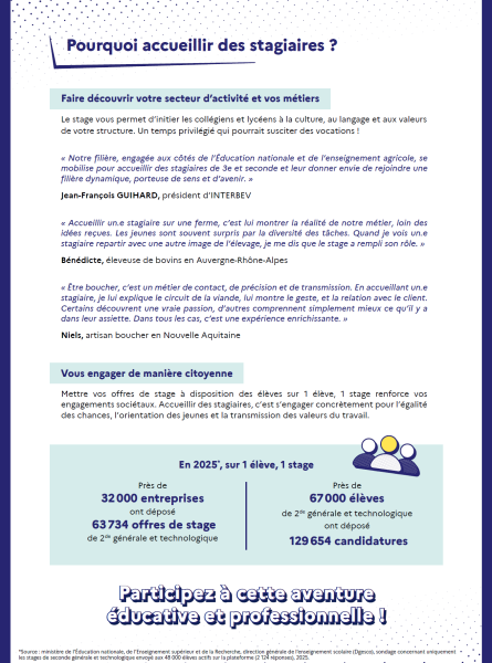 Dans ce cadre, la filière agricole et agroalimentaire est pleinement mobilisée. De nombreux professionnels de l’élevage, de la transformation et des métiers de la viande proposent des stages permettant aux élèves de découvrir concrètement des métiers utiles, variés et porteurs de sens.